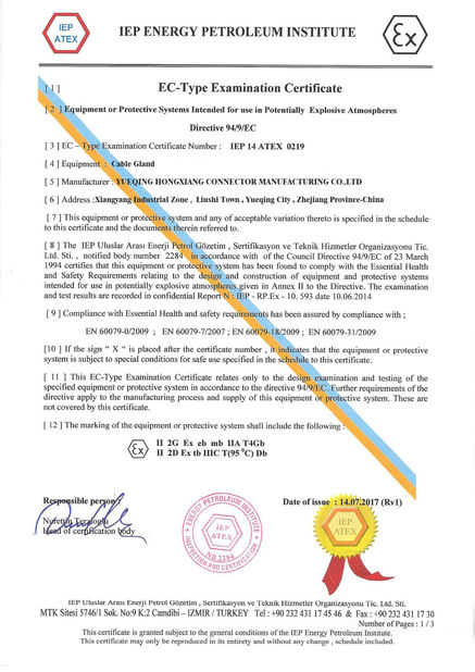 Momenteel, hebben wij Ce, ROHS, BEREIK, TUV, ATEX, IP68, goedkeuring voor onze punten. Als perfect vakmanschap, uitstekende kwaliteit en concurrerende prijs, Hongxiang-maken de artikelen een hoge reputatie zowel in binnenlandse als internationale markt.